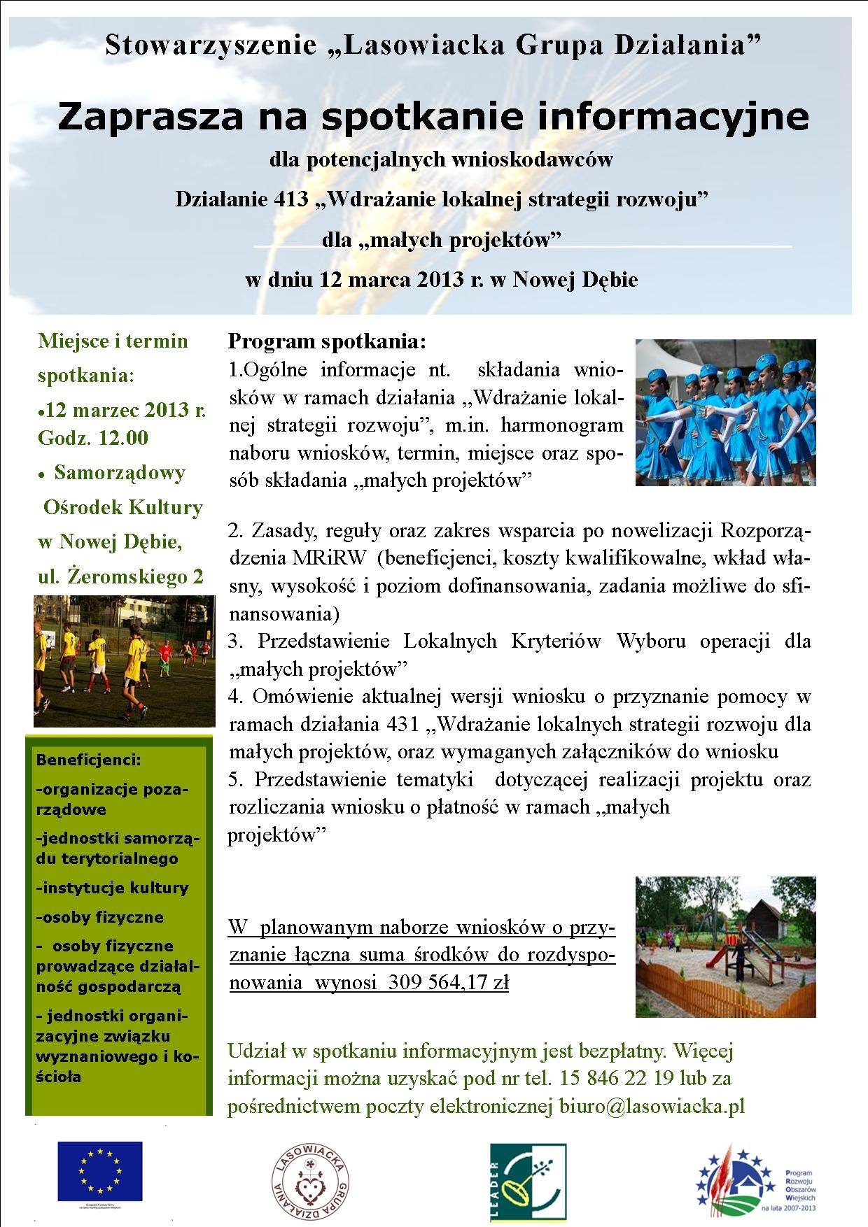 Stowarzyszenie "Lasowiacka Grupa Działania" zaprasza na spotkanie informacyjne poświęcone możliwościom i warunkom otrzymania dofinansowania ze środków unijnych w ramach działania "Wdrażanie lokalnych strategii rozwoju" dla "małych projektów".