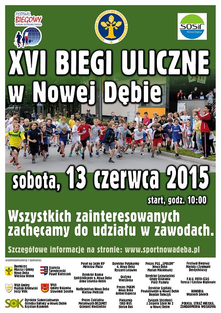 Nowodębskie Towarzystwo Społeczno-Kulturalne, Urząd Miasta i Gminy Nowa Dęba, Samorządowy Ośrodek Sportu i Rekreacji oraz Samorządowy Ośrodek Kultury zapraszają do udziału w XVI BIEGACH ULICZNYCH.