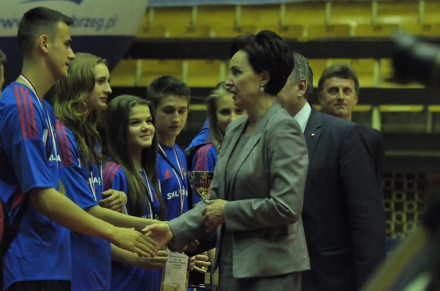 Na zdjęciach badmintoniści Stali Nowa Dęba podczas prezentacji w Tarnobrzegu przyjmują gratulacje od Podsekretarz Stanu w Ministerstwie Sportu i Turystyki pani Doroty Idzi i Prezesa Polskiego Związku Tenisa Stołowego pana Wojciecha Waldowskiego.