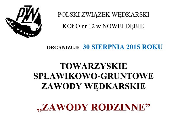 Zaproszenie na wędkarskie „ZAWODY RODZINNE"