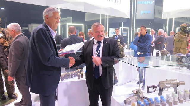 Podczas tegorocznego Międzynarodowego Salonu Przemysłu Obronnego w Kielcach burmistrz miasta i gminy Nowa Dęba Wiesław Ordon podziękował prezesowi Zakładów Metalowych DEZAMET Grzegorzowi Niedzielskiemu za mecenat i wsparcie kolejnej edycji "Militariady". Prezes DEZAMET-u nie krył zadowolenia i przyjął podziękowania.