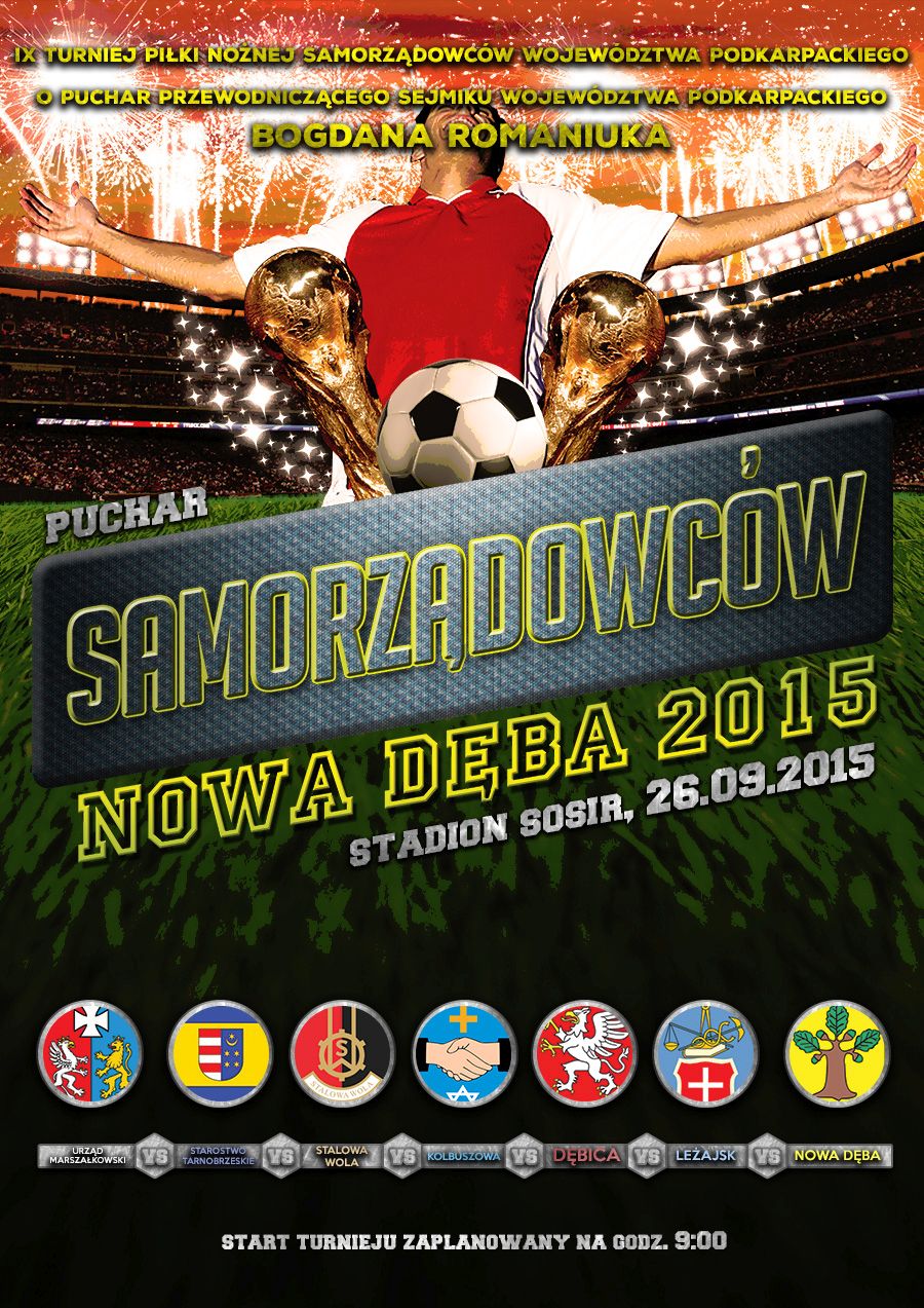 Już 26 września 2015 r. (tj. sobota) na stadionie SOSiR w Nowej Dębie zostanie rozegrany IX Turniej piłki nożnej samorządowców województwa podkarpackiego o puchar Przewodniczącego Sejmiku Województwa Podkarpackiego Bogdana Romaniuka.