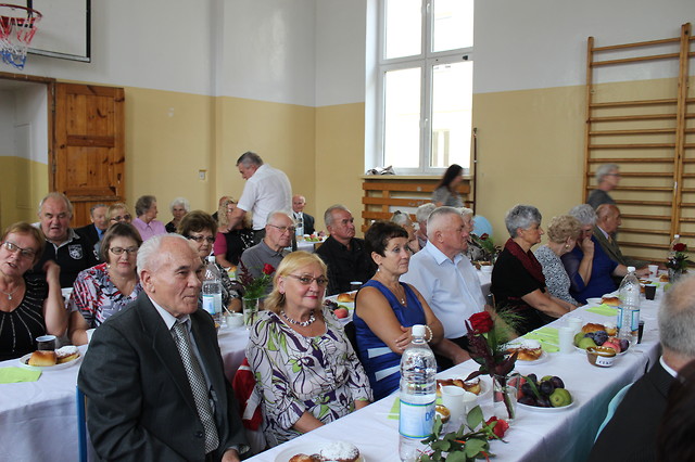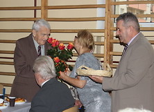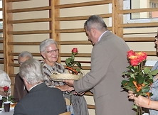 Dla Jubilatów, którzy w tym roku obchodzą swój wspaniały Jubileusz- 90, 85 i 80 lat, Przewodnicząca złożyła najserdeczniejsze życzenia wszelkiej pomyślności oraz dużo, bardzo dużo zdrowia, a panią B. Surdyka i pana Jana Witkowskiego poprosiła o wręczenie róży i czekolady dla Jubilatów, którym również zagrano i zaśpiewano 100 lat. Po części artystycznej podawany był przez Panie z M-G O P S obiad oraz ciasto, kawa i herbata. W czasie spotkania do tańca przygrywała kapela, którą zafundowali nam sponsorzy -Pan Poseł Mirosław Pluta i V-ce Przewodniczący Rady Powiatu Pan Andrzej Kołodziej. Szczególne podziękowania były dla Firmy Handlowo-Usługowej „Joanna Urban” i kwiaciarni „Gerbera” w Nowej Dębie za otrzymane kwiaty dla Jubilatów i piękne bukieciki do wystroju stołów oraz wsparcie finansowe Związku. Smaczne owoce zasponsorował nam osobiście Kierownik M-G O P S Pan Leszek Mirowski. Wszyscy uczestnicy spotkania na zakończenie dziękowali całemu Zarządowi, za przygotowanie wspaniałego przyjęcia. Organizatorzy mają też satysfakcję, że mogli dać każdemu chociaż trochę radości. Seniorzy bawili się do godziny 20-tej, w bardzo miłej atmosferze przy muzyce Kapeli.