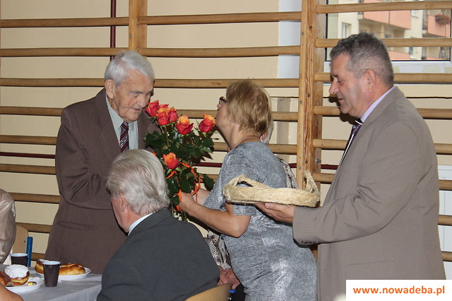 19 września 2015 w sali Zespołu Szkół Nr 1 w Nowej Dębie odbyło się spotkanie integracyjne członków Polskiego Związku Emerytów, Rencistów i Inwalidów z okazji „ Dnia Seniora”. Na uroczystość przybyło 102 osoby. Wśród zaproszonych Gości byli: przedstawiciel Zarządu Okręgowego PZERiI w Rzeszowie, Poseł na Sejm p. Pluta Mirosław, przedstawicie Zarządu Powiatu Tarnobrzeskiego, władze miasta i gminy w Nowej Dębie, Ksiądz z Parafii Podwyższenia Krzyża Św., przedstawiciele Zakładów Pracy, instytucji państwowych, stowarzyszeń oraz przyjaciele Związku. Uroczystość rozpoczęła się o godzinie 14-tej. Wszystkich przybyłych powitała serdecznie Przewodnicząca PZERiI J.M Kaczmarek, dziękując bardzo, za tak liczne przybycie. W imieniu Zarządu i Związku wszystkim darczyńcom i osobom, które czynnie wspierają nasz Związek, podziękowała Przewodnicząca, odczytując listę Sponsorów, dzięki którym mogą odbywać się takie integracyjne spotkania. Następnie Przewodnicząca poprosiła o zabranie głosu zaproszonych Gości, którzy w ciepłych słowach życzyli Seniorom wszystkiego najlepszego, długich lat życia w zdrowiu oraz dziękowali za wysiłek w pracy na rzecz Związku i Miasta, wręczając także kwiaty. Za ciepłe słowa Przewodnicząca podziękowała Gościom, a Zespół Dębianie, prowadzony przez choreografa panią Marie Łączną, wykonał piękne „Tańce Regionu Lasowiackiego”.