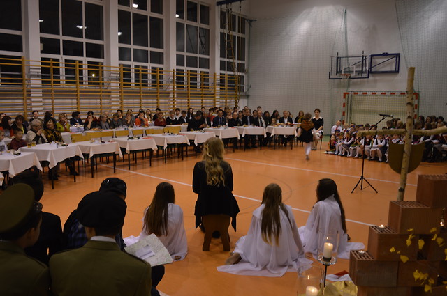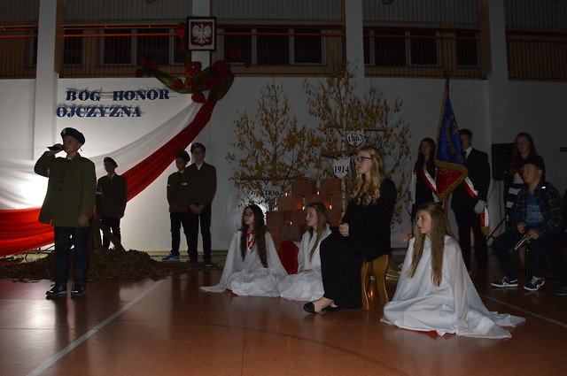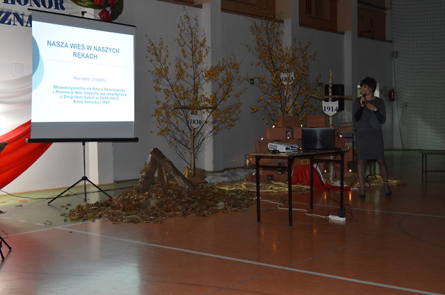 W piątek 13 listopada w szkole w Jadachach odbyła się uroczysta Wieczornica z okazji 97 rocznicy odzyskania przez Polskę niepodległości. W tym roku miała szczególny charakter , bowiem połączona była z podsumowaniem projektu " Nasza wieś w naszych rękach" Stowarzyszenia na Rzecz Ekorozwoju i Promocji Wsi Jadachy oraz projektu gimnazjalnego " Jadachy - moja Mała Ojczyzna". Na uroczystość licznie przybyli mieszkańcy oraz zaproszeni goście. Swoją obecnością zaszczycili nas Burmistrz Miasta i Gminy Nowa Dęba Pan Wiesław Ordon, członkowie Zarządu Starostwa Powiatowego Pan Jerzy Sudoł i Pani Danuta Serafin oraz radny Pan Marek Zięba, prezes Fundacji Fundusz Lokalny SMK Pan Stanisław Baska, ks. proboszcz Jan Niemiec, ks. proboszcz z Zaleszan Zygmunt Wandas, radny Pan Tomasz Wolan, sołtys wsi Pan Józef Grdeń, Prezes OSP Pan Tadeusz Jadach oraz byli przedstawiciele samorządu lokalnego. Uroczystość rozpoczęła się wprowadzeniem pocztu sztandarowego i odśpiewaniem hymnu narodowego. Pamięć minionych dni i dumę z odzyskanej wolności przywołały pieśni i wiersze patriotyczne we wzruszającym montażu słowno - muzycznym, którego hasłem przewodnim były słowa: " Nasze drogi ku Wolności". Pokaz choreograficzny młodych artystów jak i piękna scenografia oświetlona blaskiem kilkudziesięciu świec przykuwały uwagę publiczności i dopełniały całości. Program artystyczny przygotowali nauczyciele: p. Beata Barwińska, p. Anna Stagraczyńska, p. Damian Wdowiak. Oprawę muzyczną wzbogaciły pieśni wykonane przez parafialną scholę pod kierunkiem p. Alicji Zych. W drugiej części uroczystości prezes Stowarzyszenia na Rzecz Ekorozwoju i Promocji Wsi Jadachy p. Elżbieta Głaz podsumowała zrealizowany przez stowarzyszenie we współpracy ze szkołą, radą sołecką i OSP projekt, który wyrażał swoisty lokalny patriotyzm, a przez to wpisywał się w to jakże ważne Święto. Efektem projektu jest ładniejsze otoczenie, ciekawie zagospodarowana przestrzeń publiczna Jadachów oraz publikacja o naszej małej ojczyźnie pt. " Jadachy wczoraj i dziś." W tworzenie publikacji zaangażowali się także uczniowie klasy II gimnazjum w ramach projektu gimnazjalnego, którego opiekunem była p. Barbara Wdowiak. Uczniowie spotkali się z lokalnymi samorządowcami, przeprowadzali wywiady z mieszkańcami, zbierali materiały, uczestniczyli w warsztatach fotograficznych i dziennikarskich. Na wieczornicy gimnazjaliści podzielili się refleksjami na temat swojego projektu. Prezes stowarzyszenia podziękowała wszystkim darczyńcom, mieszkańcom, uczniom, którzy zaangażowali się w realizację całego projektu. W ostatniej części wieczornicy wszyscy uczestnicy mogli wykazać się talentem wokalnym i wspólnie zaśpiewać pieśni, które intonował ks. proboszcz Jan Niemiec . Swoim występem wokalnym zachwycił Pan Burmistrz, który zaśpiewał regionalną pieśń pt. " Lipka". Uroczystość zakończyła Dyrektor szkoły Pani Bernarda Głowacka, która podziękowała wszystkim za uczestnictwo, a nauczycielom i członkom stowarzyszenia za zaangażowanie w organizację wieczornicy. Refleksja, zadumanie, ale przede wszystkim radość towarzyszyła naszej uroczystości. Ta wyjątkowa wieczornica na długo pozostanie w naszej pamięci. Wszyscy uczestnicy wieczornicy otrzymali bezpłatne egzemplarze publikacji " Jadachy wczoraj i dziś".