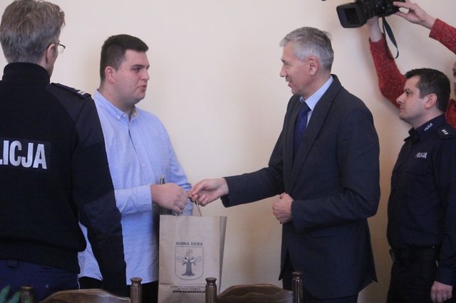 Zastępca Komendanta Miejskiego Policji w Tarnobrzegu mł. insp. Tomasz Oleksak wspólnie z burmistrzem miasta i gminy Nowa Dęba Wiesławem Ordonem i wiceprezydentem miasta Tarnobrzega Józefem Motyką wręczyli podziękowania trzem mężczyznom. Dwóch z nich przyczyniło się do wyjaśnienia okoliczności śmiertelnego wypadku drogowego, trzeci do wyjaśnienia kradzieży rozbójniczej.