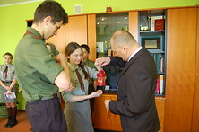 Burmistrz podziękował za życzenia i kolędę, a harcerzom życzył wytrwałości w doskonaleniu siebie oraz w działaniach na rzecz społeczności lokalnej.