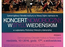 Samorządowy Ośrodek Kultury w Nowej Dębie serdecznie zaprasza na Koncert Noworoczny w wykonaniu Mieleckiej Orkiestry Kameralnej, który odbędzie się 10 stycznia 2016 r. o godz. 17:00 w sali widowiskowej SOK.
