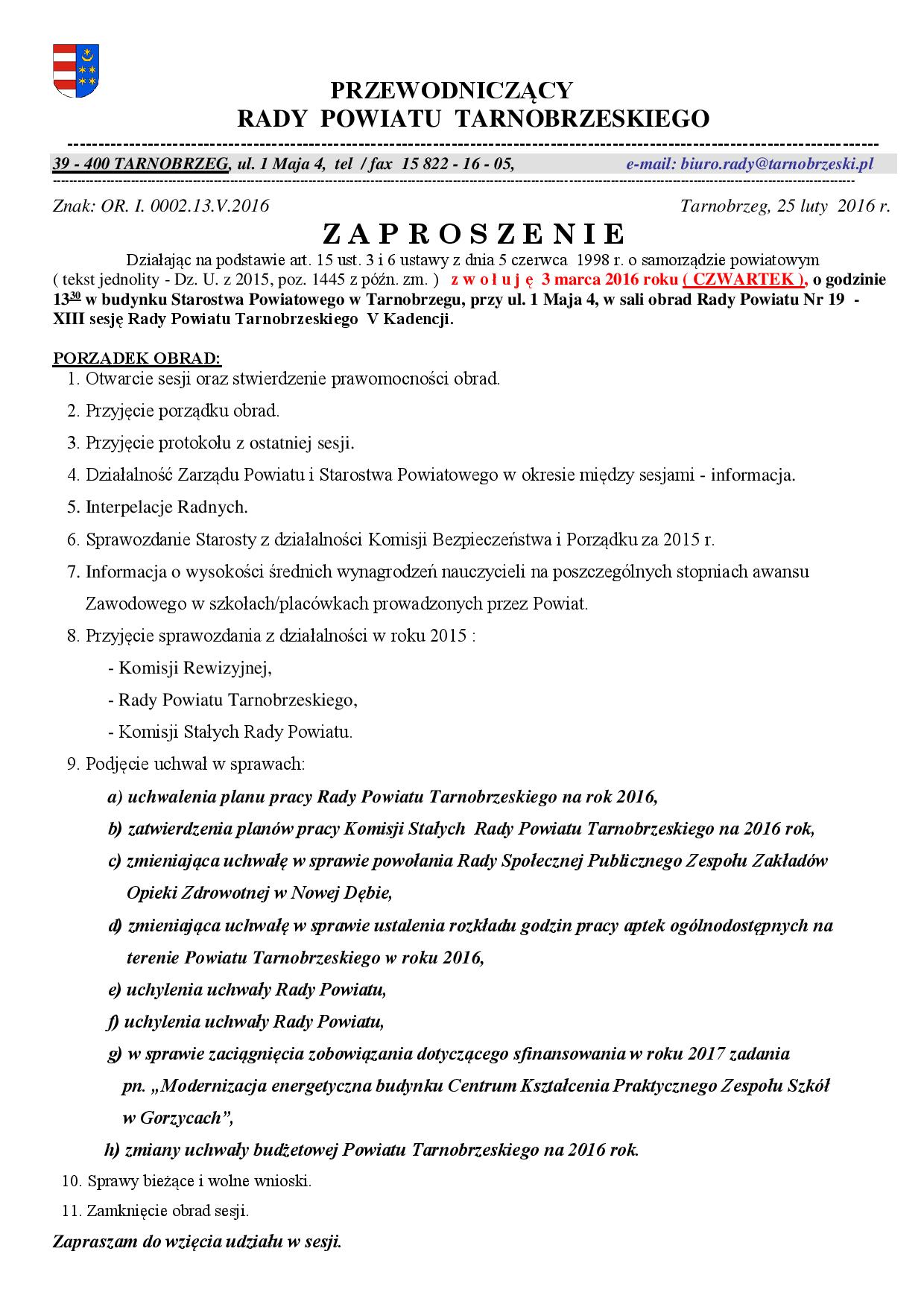 Zaproszenie na sesję Rady Powiatu