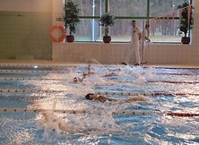 Pierwszą rozgrywaną konkurencją był wyścig na 50 metrów stylem dowolnym. Ogromne wrażenie zrobił na nas występ zawodnika z Krakowa, który pokonał ten dystans w czasie 43,28 s. w wieku 86 lat!!! Dla nas zaszczytem była możliwość obcowania z takimi ludźmi. Następnie nadszedł czas na start pierwszego z nas, Piotr Socha pokazał klasę uzyskując wynik 28,27 s. co dało mu trzecie miejsce i brązowy medal, do srebra brakło jedynie 0,05 s. Pierwszy zdobyty medal bardzo nas ucieszył. W sobotnich zmaganiach wszyscy wystartowaliśmy jeszcze w wyścigu na 100 m stylem klasycznym. Wiesław Puzio w swojej kategorii wiekowej wywalczył na tym dystansie bardzo dobre 5 miejsce z czasem 1:40,31, Hubert Krasowski nie wytrzymał napięcia i popełnił falstart co skutkowało dyskwalifikacją, zaś nasz lider Piotr Socha po pasjonującej walce z ,, wielkoludem’’ (205cm wzrostu) ze Zdzieszowic wywalczył srebrny medal, a do złota zabrakło jedynie 0,03 sekundy.