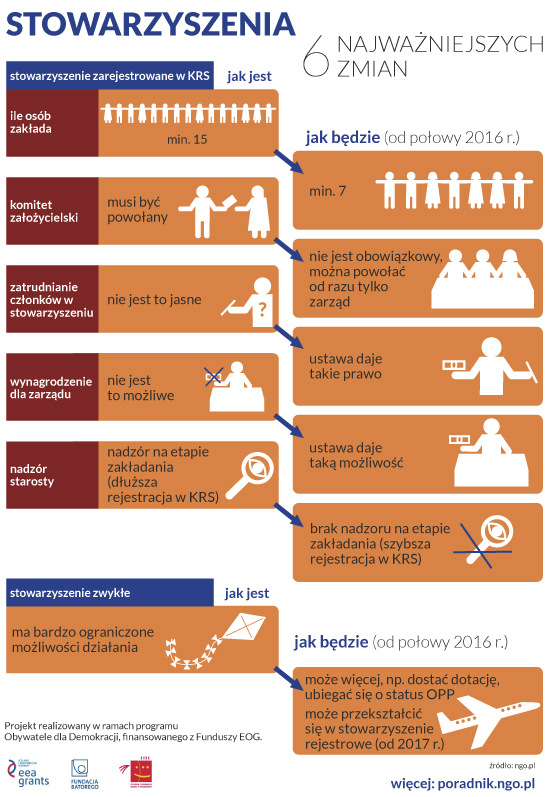 Ponadto od 20 maja 2016 r. stowarzyszenia nieprowadzące działalności gospodarczej nie będą płacić za zgłaszanie zmian do KRS (dotąd część sądów takie opłaty pobierała).