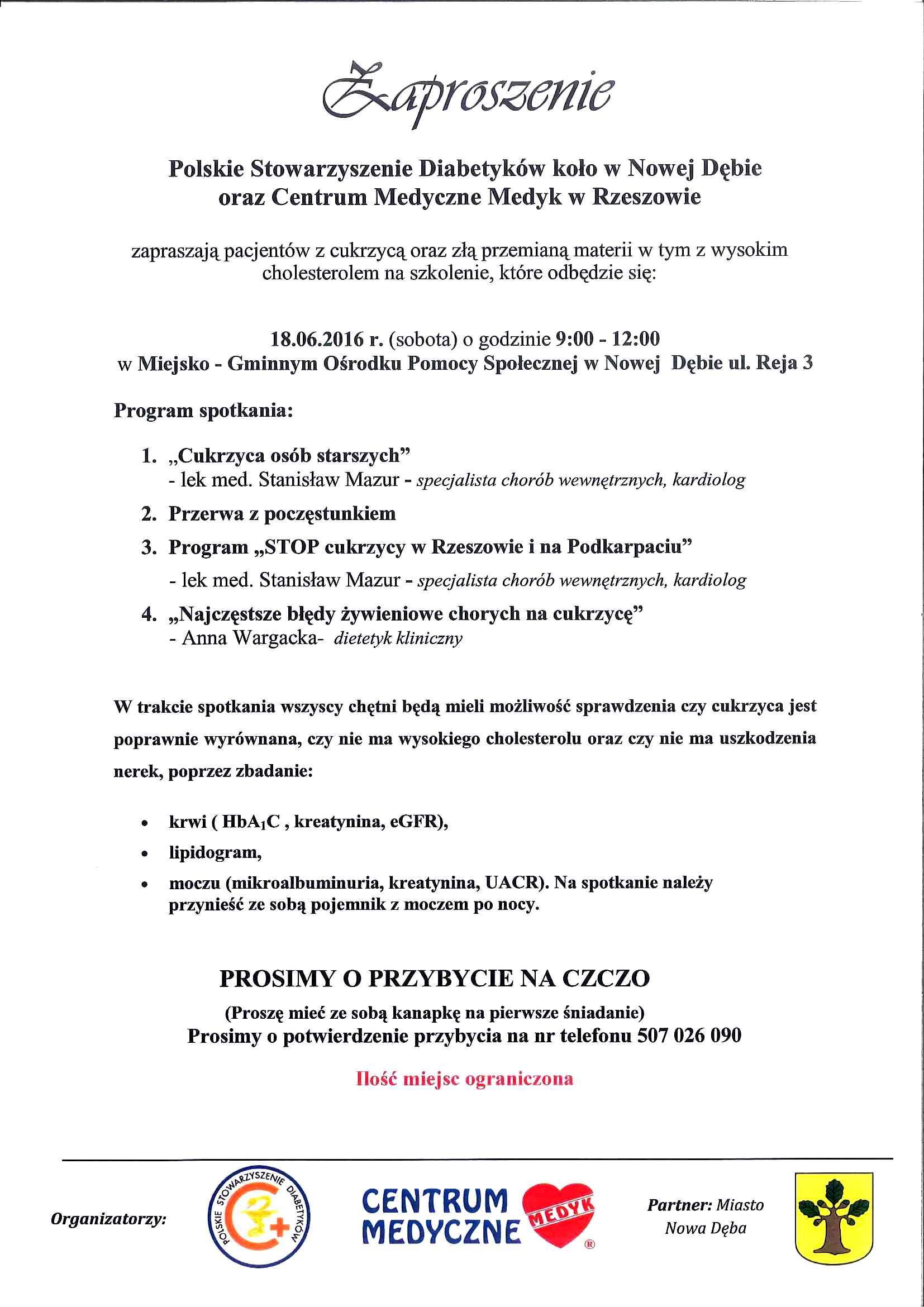 Zaproszenie na szkolenie "STOP cukrzycy"