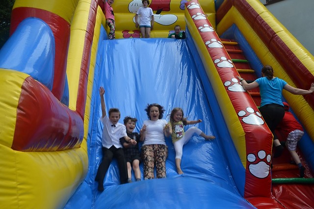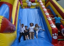 i przybyłych rodziców. Ciasta, ciasteczka, lody, soczki, to tylko część pyszności przygotowanych przez nauczycieli i rodziców. Ogromną radość sprawiła dzieciom zjeżdżalnia, która była prezentem od nauczycieli. Gry