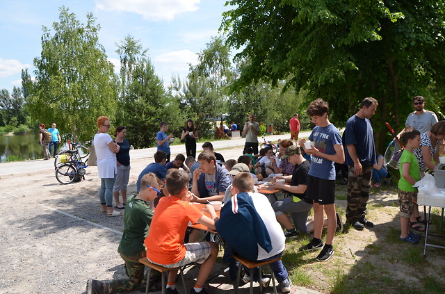 Przy bardzo ładnej pogodzie , uczniowie szkół podstawowych i gimnazjalnych mieli okazję sprawdzić się w rywalizacji kto będzie sprytniejszy- łowiący czy ryby. Wynik tego pojedynku można uznać za remis bo byli tacy uczestnicy którym udało się przechytrzyć rybki i złowili ich po 2-3 kilogramy i byli tacy którzy przegrali łowiąc 1 -2 rybki.