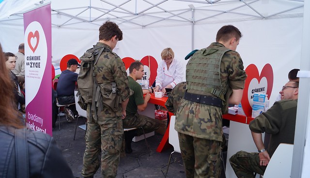 Dzięki stoisku kampanii „Ciśnienie na Życie”, które po raz kolejny pojawi się na „Militariadzie”, wszyscy zainteresowani będą mogli poddać się bezpłatnym badaniom z zakresu układu krążenia. Badania przeprowadzane przez wykwalifikowany personel medyczny to nie tylko pomiar ciśnienia tętniczego krwi, ale także innowacyjne badanie wieku serca. Ocena wieku serca, prowadzona za pomocą specjalnej aplikacji[1], pozwala stwierdzić, czy u pacjenta istnieje zwiększone ryzyko zachorowania na zawał serca lub udar mózgu. Występuje ono wtedy, gdy obliczony wiek serca jest wyższy od wieku metrykalnego. Dobra wiadomość – wiek serca można obniżyć! Może to uczynić każdy, kto zmieni styl życia na bardziej zdrowy oraz w razie potrzeby będzie skutecznie leczył nadciśnienie tętnicze, cukrzycę czy hipercholesterolemię. Obniżeniu wieku serca sprzyja pozbycie się otyłości poprzez stosowanie zdrowej diety i zwiększenie aktywności fizycznej oraz rzucenie palenia.