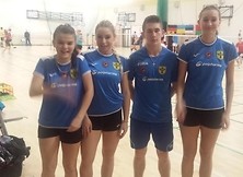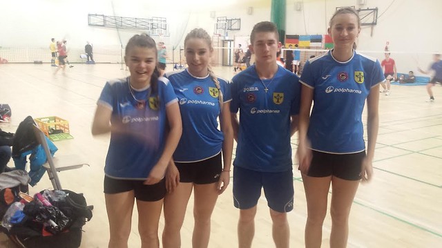 Na zdjęciach badmintoniści Stali Nowa Dęba na warszawskich badmintonowych kortach, juniorzy młodsi od lewej strony: Zofia Tomczyk, Natalia Róg, Rafał Lejko i Beata Mycek oraz od lewej strony junior Patryk Kopeć i młodzik Jakub Suszyński.