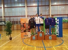 Na zdjęciach złote pary Podkarpacia i Stali Nowa Dęba w grach podwójnych i mieszanej na najwyższym stopniu podium w Zamościu: debel dziewcząt: Natalia Róg (Stal) / Magdalena Golenia (Orbitek), debel chłopców: Rafał Lejko (Stal) / Jakub Kufel (Orbitek) oraz mixt klubowy Stali: Rafał Lejko / Natalia Róg.