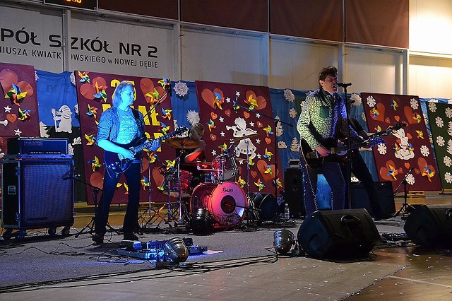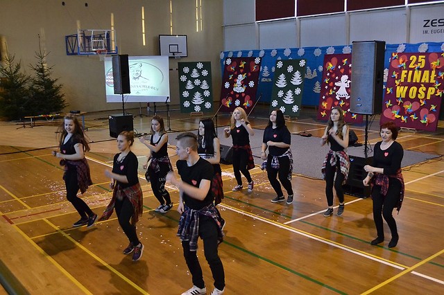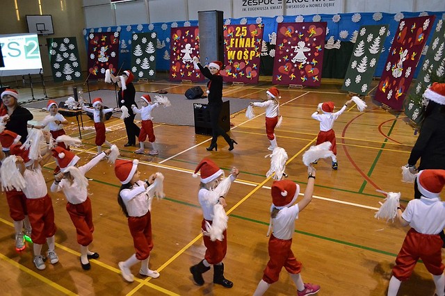 Czterdziestu naszych uczniów kwestowało na nowodębskich ulicach, a w hali sportowej odbywały się m.in. koncerty, pokazy taneczne i licytacje. Imprezę ok. godziny 14:00 rozpoczęła dyrektor dwójki Iwona Strojek wspólnie z burmistrzem miasta i gminy Nowa Dęba Wiesławem Ordonem oraz przedstawicielami Szpitala Powiatowego w Nowej Dębie. Następnie wszystko potoczyło się wg programu. Licznie przybyłe rodziny oglądały występy najmłodszych artystów, którymi były urocze dzieciaki z nowodębskich przedszkoli: Krasnal, Miś Uszatek i Jedyneczki. Wystąpiły także niezwykle utalentowane dziewczyny: Patrycja Wilk, Oliwia Skóra, a także artyści z eMKi i uczniowie naszej szkoły w specjalnym układzie tanecznym i wokalnym. Pięknie zaprezentowali się młodzi gitarzyści i urocze cheerleaederki z Majdanu Królewskiego oraz młodzi karatecy. Ważnym punktem programu były licytacje, na których pod młotek poszły min. kupony na basen, gadżety wykonane przez uczniów technikum CNC, obrazy, piłki, kaski, koszulki zawodnika Stal Nowa Dęba i wiele innych atrakcyjnych przedmiotów. Godziny upływały, a trybuny sali gimnastycznej zapełniały się coraz bardziej. Niewątpliwie przyczyniły się do tego również niezwykle energetyczne koncerty zespołów: Kofi i Kontraband. Wszyscy WOŚP-owicze mogli posilić się m.in. przepyszną grochówką, grillowanymi kiełbaskami i domowym jadłem. O godzinie 20.00 przed budynkiem szkoły wypuściliśmy światełko do nieba czyli dobrą energię w stronę Aniołów. Szefowa sztabu WOŚP - pani Zofia Sudoł nie ukrywa radości, że mimo wszystko udało się zorganizować imprezę, dzięki której można pomóc drugiemu człowiekowi i zebrać ponad 18,5 tys. złotych.