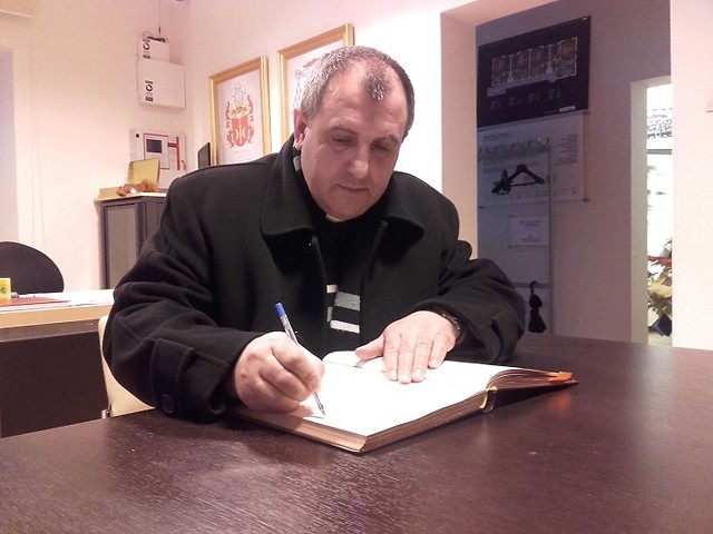 Ksiądz Bajcar przybył do naszego miasta w piątkowe popołudnie 20 stycznia 2017 roku. Gościnę w postaci noclegów i pełnego wyżywienia zapewnił księdzu Pan Paweł Grzęda, właściciel Hotelu Szypowski, za co organizatorzy wizyty składają mu serdeczne podziękowania. Pod kątem organizacyjnym, wizytą księdza zajmował się Wojciech Bulanowski. W piątkowy wieczór przy smakowitej kolacji omówiliśmy sytuację Polaków oraz polskiego Kościoła na Kresach, a podkreślić należy, że sytuacja ta jest bardzo trudna. Gdy w polskojęzycznych mediach przedstawia się wydarzenia na Ukrainie cała uwaga skupiona jest głównie na Ukraińcach i ich problemach. Natomiast sytuacja naszych rodaków jest całkowicie pomijana a w najlepszym przypadku przedstawiana na marginesie zdarzeń. A przecież nie wolno zapominać, że Kresy Wschodnie były integralną częścią naszego kraju oraz o tym, że to nie Kresowiacy opuścili swoją ojczyznę lecz zostali jej pozbawieni w wyniku politycznych decyzji światowych mocarstw. Oni tam pozostali, a wraz z nimi cząstka naszej ojczyzny. Naszym obowiązkiem jest udzielenie im pomocy w utrzymaniu żaru polskości.