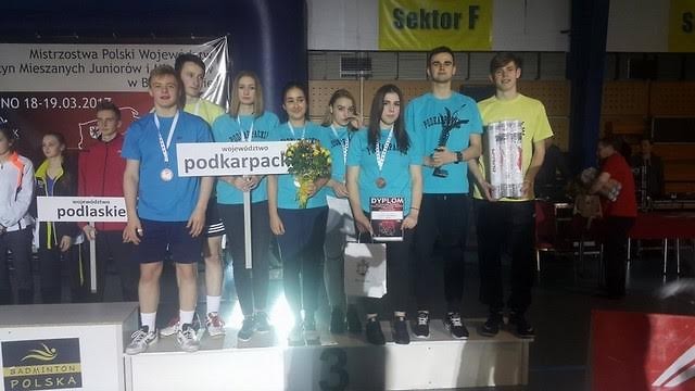 Drużyna województwa podkarpackiego w tych mistrzostwach wystąpiła w składzie: Natalia Róg, Beata Mycek, Tymoteusz Malik, Patryk Kopeć (wszyscy ze Stali Nowa Dęba), Magdalena Golenia (UKS Orbitek Straszęcin), Klaudia Bukowińska (RKB Rzeszów0, Konrad Płoch i Paweł Kopański (UKS Start Widełka). Tym samym juniorzy z Podkarpacia powtórzyli swój wyczyn z przed dwóch lat, gdzie też w Kępnie wywalczyli brązowy medal. Jak widać trzon brązowej drużyny z Podkarpacia tworzyli badmintoniści Stali Nowa Dęba, którym należą się wielkie słowa uznania. Śmiało trzeba stwierdzić, że mecze młodych badmintonistów Stali w rozgrywkach badmintonowej ekstraklasy procentują w sposób wymierny.