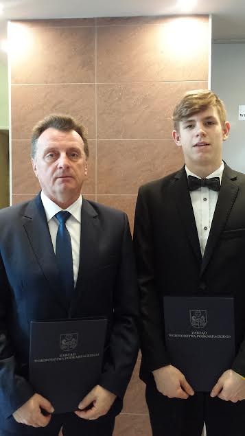 Na zdjęciach nagrodzeni: Adam Bunio i Tymoteusz Malik podczas IX Gali w Rzeszowie.