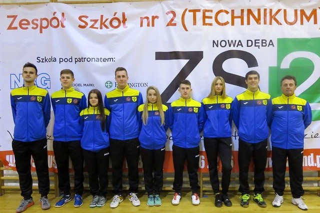 Na zdjęciu jeden z najmłodszych badmintonowych zespołów ligowych w Polsce Stal Nowa Dęba siódma drużyna badmintonowej elity, stoją od lewej strony: Patryk Kopeć, Tymoteusz Malik, Zofia Tomczyk, drugi trener i kapitan w jednej osobie Mateusz Czachor, Natalia Róg, Rafał Lejko, Beata Mycek, Szymon Malik i pierwszy trener Adam Bunio.