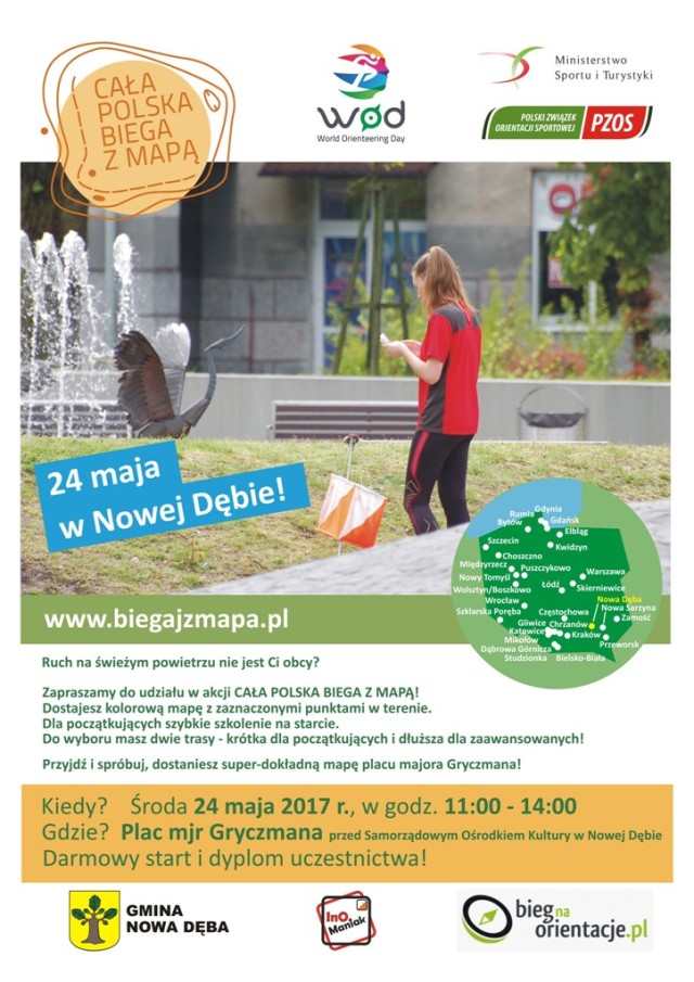 W środę 24 maja w godz. 11:00 - 14:00 w centrum Nowej Dęby będzie można pobiegać z mapą w ramach światowego dnia orienteeringu połączonego z ogólnopolską akcją Cała Polska Biega z Mapą.