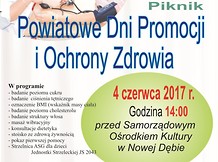 Stowarzyszenie Poręba oraz Zespół Szkół nr 2 w Nowej Dębie serdecznie zapraszają na Powiatowe Dni Promocji i Ochrony Zdrowia, które odbędą się w niedzielę 4 czerwca 2017 od godz. 14.00 przed Samorządowym Ośrodkiem Kultury w Nowej Dębie.