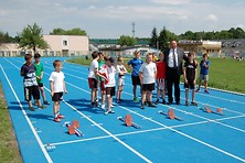 Młodych zawodników na pierwszych zawodach na nowym stadionie przywitał i zawody otworzył zastępca burmistrza miasta i gminy Nowa Dęba Leszek Mirowski.