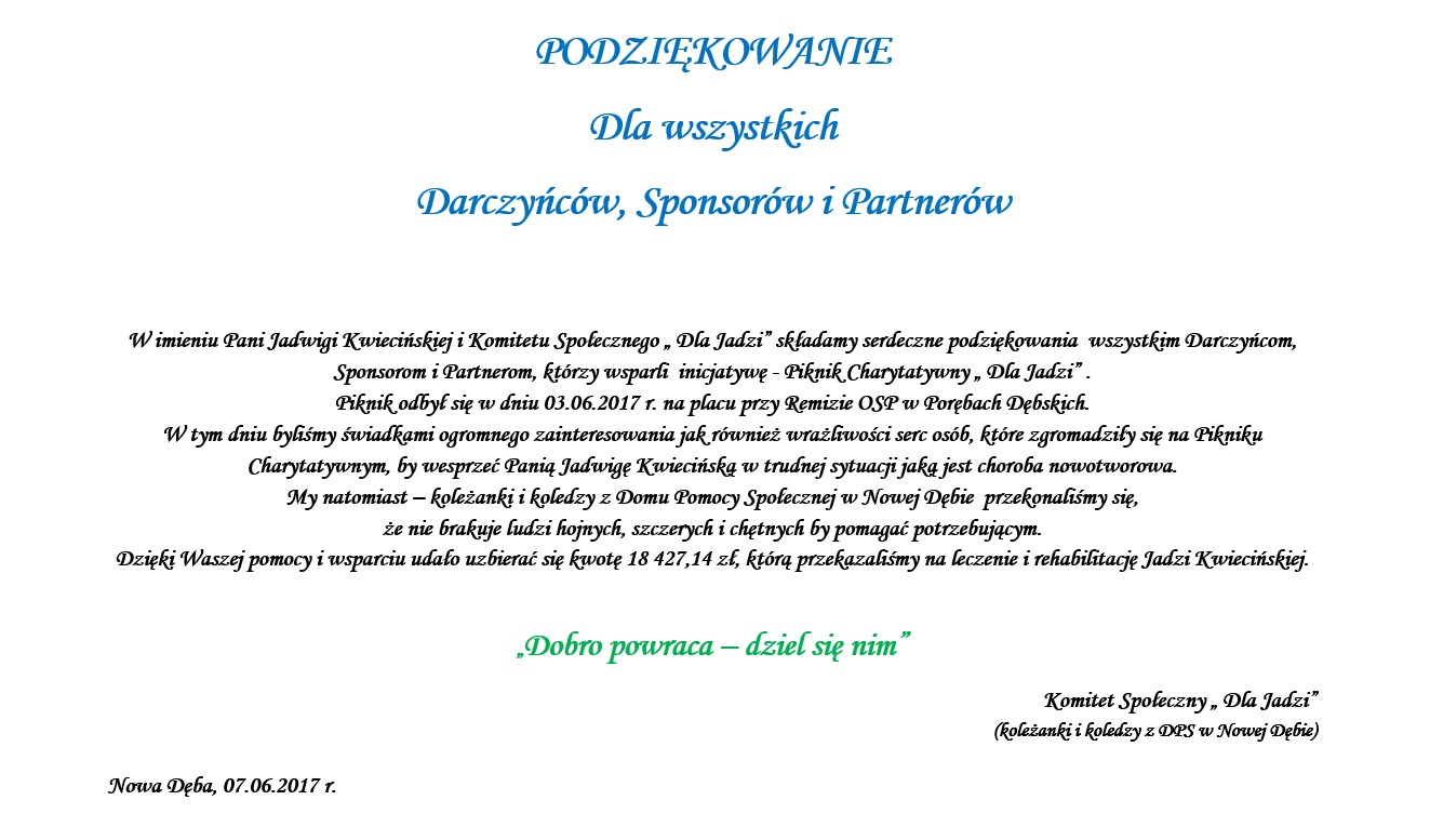 Piknik charytatywny "Dla Jadzi" - podziękowanie