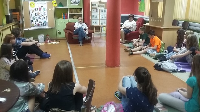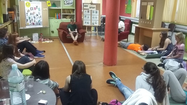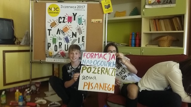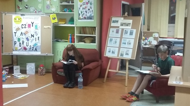 Na Nocy Bibliotek zaplanowano trzy warsztaty – ze względu jednak na magię spotkania – „Pożeracze Słowa” nie mogli przestać mówić o książce - i czas, który zdawał się zatrzymać w miejscu szybko przeminął– toteż dwa kolejne spotkania przeprowadziliśmy w innym terminie.