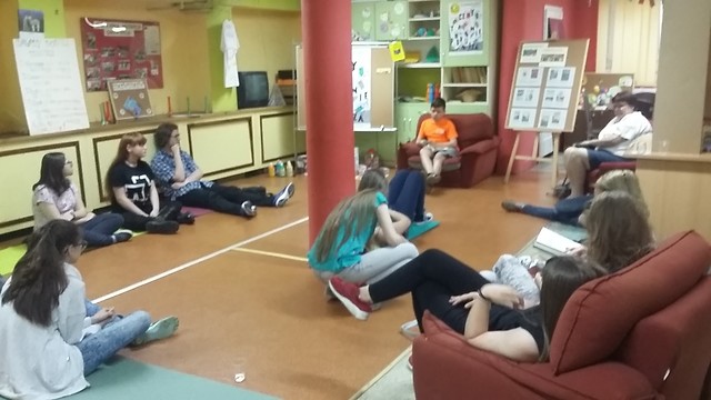 Kolejny warsztat związany był z umiejętnością dostrzegania daru, którym jest każdy następny dzień… Połączenie zabawy i refleksji to najlepszy sposób, aby młodzi ludzie sami dochodzili do pewnych prawd…- udział w wyścigu z łyżeczka pełną oliwy w zestawieniu z opowiadaniem Bruno Ferrero „365 opowiadań dla ducha” traktującym o bardzo bogatym królu, który nie potrafił już się już cieszyć ze zwykłych rzeczy, bo miał przesyt wszystkiego… może dać do myślenia. Nietypowy tor przeszkód – z elementami sztuki, muzyki, słowa i form życia pod różna postacią ….uczniowie pokonywali, skupiając się głownie na tym, żeby być pierwszym, jak to w zawodach sportowych. A przecież po drodze był i piękny obraz, i skrzypce, i jajko, wrzos i kamień , słowo i puste krzesło, przy którym mogli się zatrzymać tak po prostu, jak czasem w życiu trzeba się zatrzymać ….Czy goniąc za doczesnymi dobrami , nie gubimy w życiu tego, co naprawdę jest ważne? Czy skupiając się tylko na osiągnięciu celu , przestajemy dostrzegać zwyczajne piękno świata i drugiego człowieka?