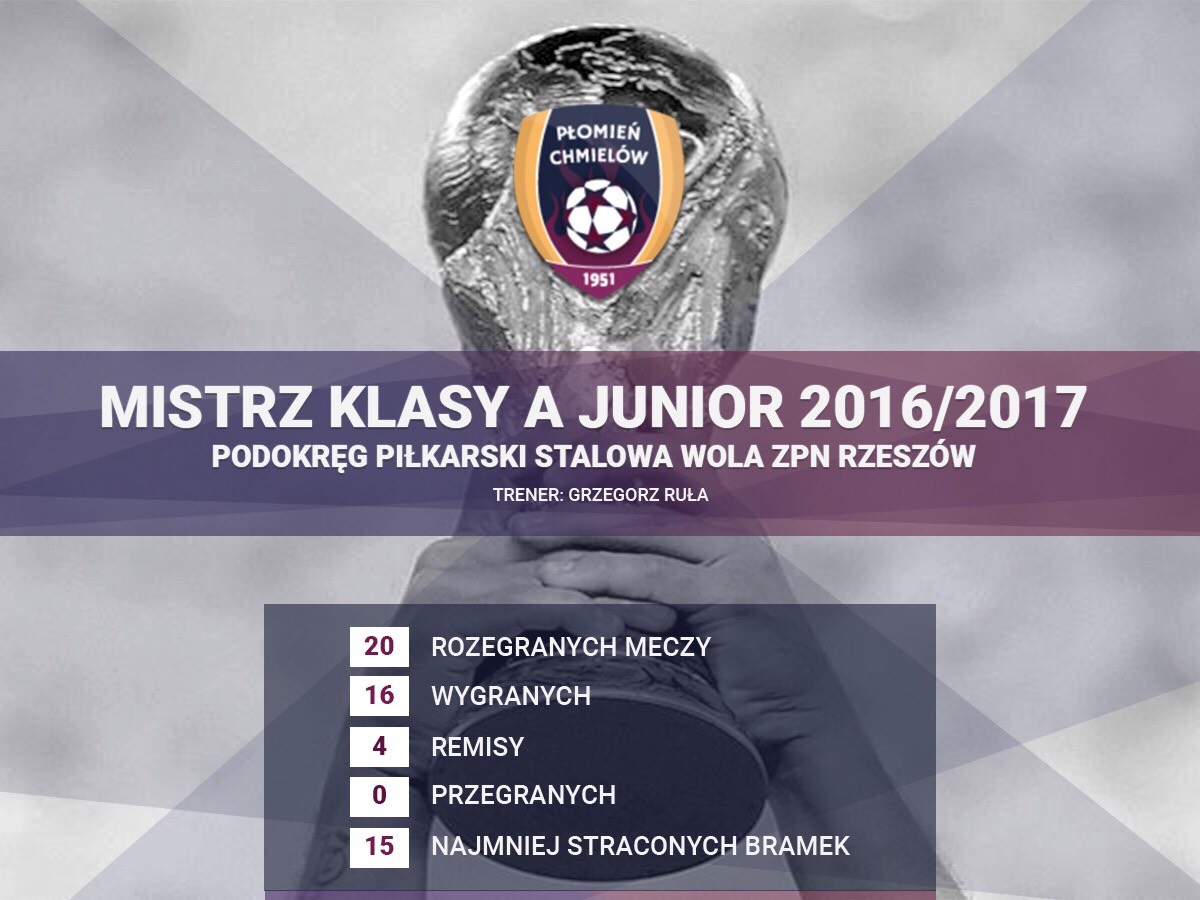 Juniorzy Płomienia, bez porażki w całym Sezonie 2016/2017, jako Mistrzowie awansują bezpośrednio do V Ligi "Okręgowej".