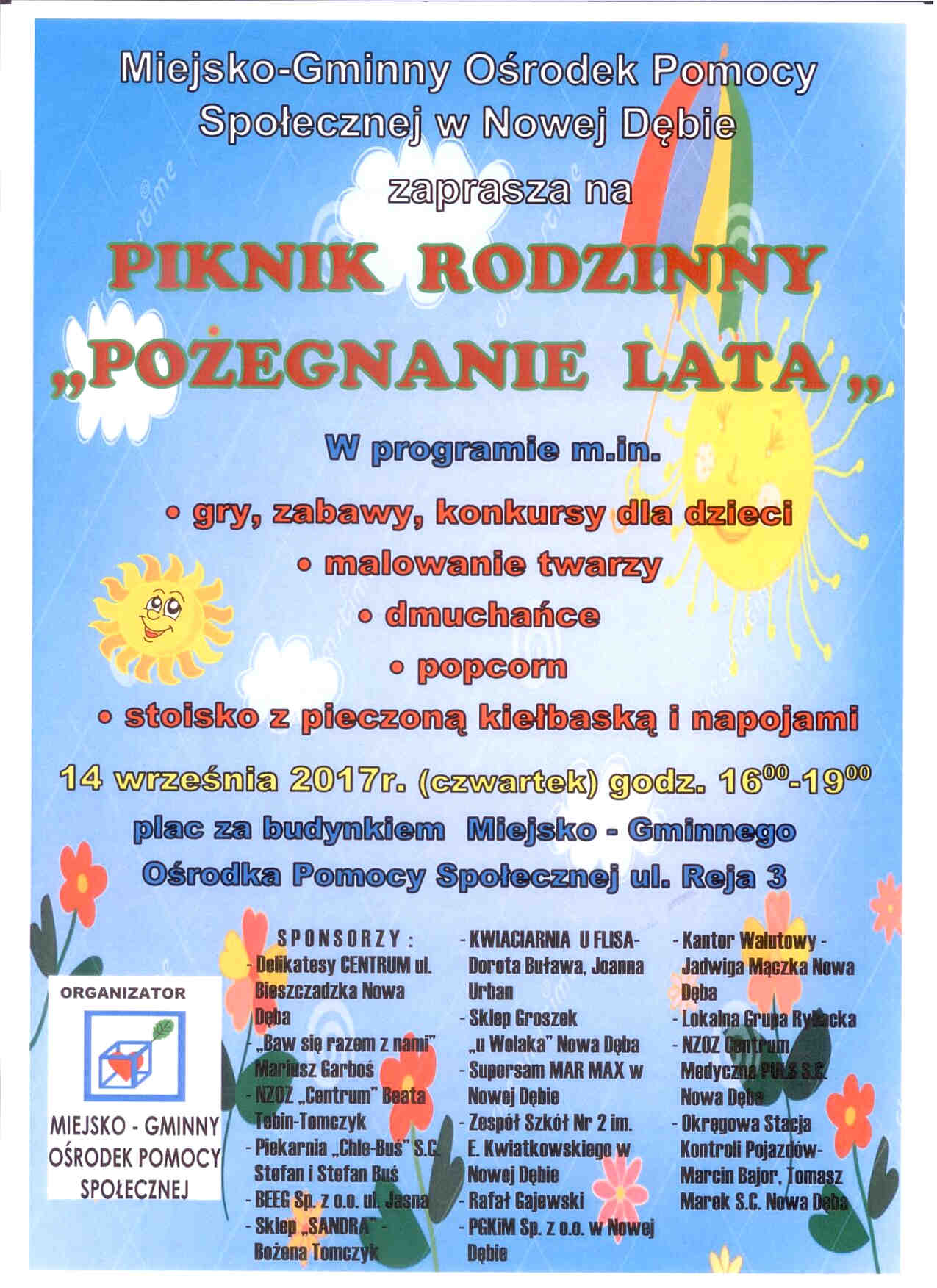 MGOPS zaprasza na piknik rodzinny "Pożegnanie lata"