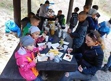 Po tej lekcji historii, pozostał do przebycia ostatni leśny odcinek drogi. Na miejscu, na tzw. „Lisiej Górce” uczestnicy spotkali się z zaproszonym gościem - czekał tam już pan leśniczy Józef Rutyna, który opowiedział uczniom o zwierzętach żyjących w pobliskim lesie oraz o drzewostanie.