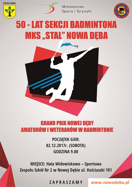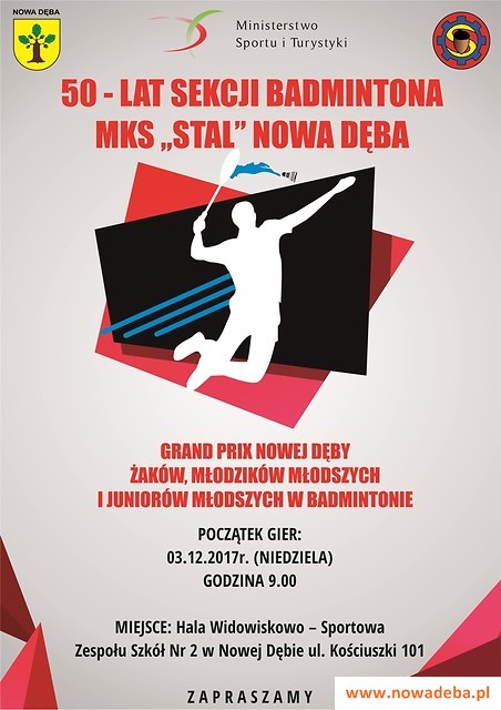 Z wielką satysfakcją informujemy, że w 2017 roku sekcja badmintona działająca w Miejskim Klubie Sportowym "Stal" w Nowej Dębie obchodzi zloty Jubileusz 50 - lecia swojej działalności w środowisku Miasta i Gminy Nowa Dęba.