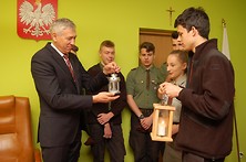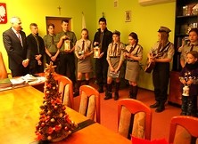 Harcerze z Nowej Dęby i z Tarnowskiej Woli przekazali burmistrzowi Wiesławowi Ordonowi przywiezione z Zakopanego Betlejemskie Światło Pokoju.