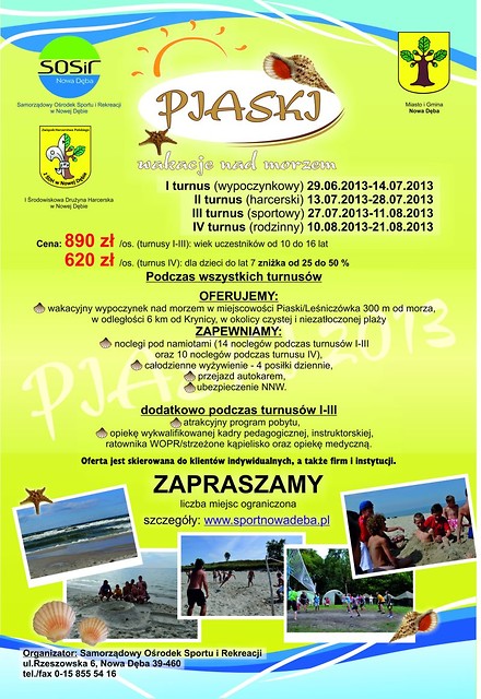 W roku 2013 SOSiR Nowa Dęba już po raz drugi organizuje obóz pod namiotami w Piaskach koło Krynicy Morskiej.