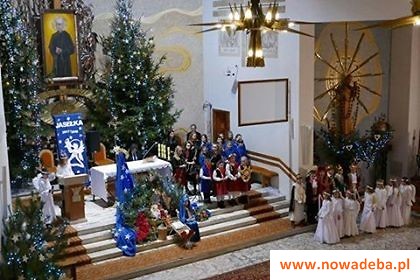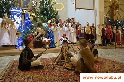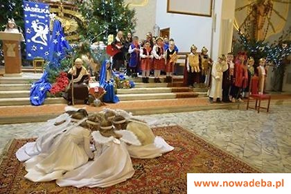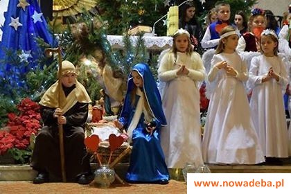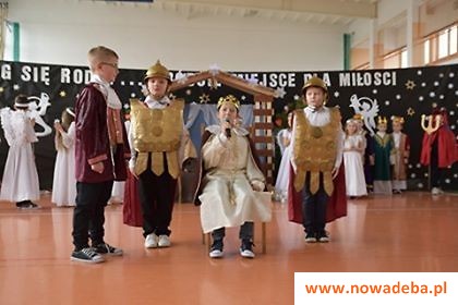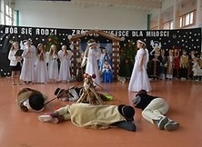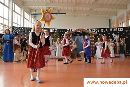 Trudno sobie wyobrazić świątecznego spotkania 22 grudnia społeczności Szkoły Podstawowej w Jadachach bez wystawienia tradycyjnych bożonarodzeniowych jasełek. W tym roku szkolnym inscenizacji biblijnych wydarzeń podjęli się uczniowie z klasy drugiej i trzeciej pod kierunkiem wychowawców: Małgorzaty Zbyrad, Elżbiety Głaz oraz Katarzyny Haraf – Żmudy. Przygotowania trwały od miesiąca. Uczniowie poświęcili wiele czasu na próby i przygotowania, tym bardziej, że poza nauką tekstu, ruchu scenicznego, tańców, dzieci uczyły się też śpiewu kolęd i pastorałek, by w pełni oddać radość z narodzenia Pana. Jasełka pt.„Bóg się rodzi… zróbcie miejsce dla miłości” składały się z wielu scen, w których mali aktorzy z dużym zaangażowaniem i przejęciem odgrywali swoje role. Była scena Zwiastowania Najświętszej Marii Panny, spotkania Mędrców z Herodem, scena Narodzenia Chrystusa, podążających z darami pastuszków, spieszących oddać pokłon Trzech Królów, wesoły orszak małych dzieci oraz sceny ze szczególnie wzruszającymi tańcami Aniołów. Całość przedstawienia, przeplatana była kolędami w wykonaniu dzieci i scholi pod kierunkiem p. Damiana Wdowiaka, co razem utworzyło niepowtarzalny klimat radości i refleksji. Dużą rolę odegrały piękne stroje małych aktorów starannie dobrane przez rodziców. Przedstawienie dzieci, łamanie się opłatkiem, składanie sobie życzeń, wprowadziło nas w radosny czas Świąt Bożego Narodzenia. W tym dniu także dyrektor szkoły p. Bernarda Głowacka wręczyła nagrody laureatom konkursów plastycznych „ Tradycje Świąt Bożego Narodzenia” oraz Najpiękniejsza bombka świąteczna w gminie Nowa Dęba” zorganizowanych przez SOK oraz szkolnego konkursu „ „Pomagam, bo lubię”.