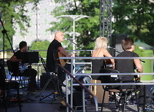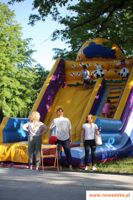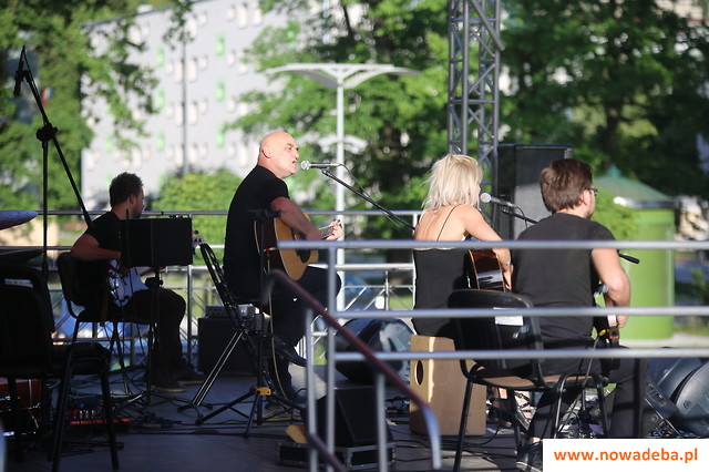 Druga część obchodów miała miejsce na placu przed budynkiem SOK. Na rodzinne świętowanie złożył się piknik dla dzieci i koncert – o 17:30 zagrali artyści pochodzący z naszego miasta – Żaneta i Robert Lubera z zespołem NIE-BO. Lider zespołu ze wzruszeniem wspominał lata spędzone w Nowej Dębie, zaznaczył, iż nadal z rodziną często nas odwiedza. Żaneta szerszemu gronu odbiorców dała się poznać jako półfinalistka programu The Voice Of Poland. Tworzy własne autorskie piosenki. Jest stypendystką Miasta Krakowa, laureatką World Independent Music Award. Współpracowała z wieloma artystami na szerokim polu gatunków muzycznych. Na koncercie wysłuchaliśmy przede wszystkim autorskich piosenek Żanety i Roberta, było dużo premier, które nie były jeszcze grane w Nowej Dębie.