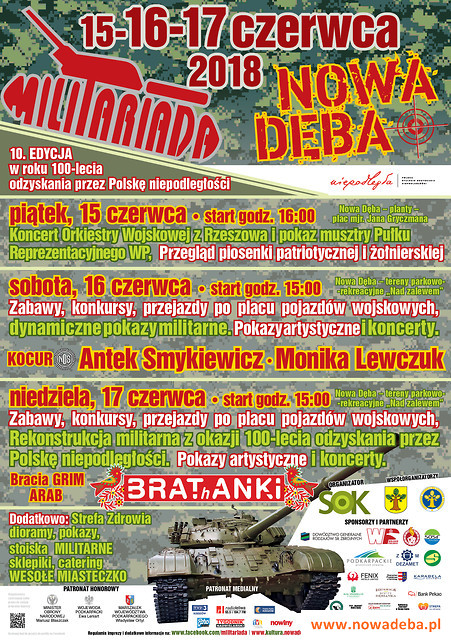 W trzeci weekend czerwca północne Podkarpacie zamieni się w poligon muzyczno-militarny. Militariada funkcjonuje już 10 lat! Z roku na rok jest coraz bardziej znana i ma ogólnopolski zasięg. W roku 2017 według informacji służb zabezpieczających imprezę odwiedziło ją kilkanaście tysięcy uczestników. Organizatorami są: Burmistrz Miasta i Gminy Nowa Dęba, Dyrektor Samorządowego Ośrodka Kultury w Nowej Dębie oraz Prezes Nowodębskiego Towarzystwa Społeczno-Kulturalnego.