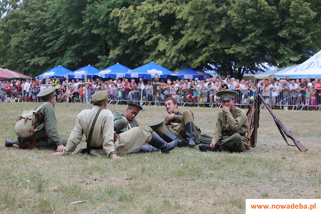 - Dlatego razem z Nowodębskim Towarzystwem Społeczno-Kulturalnym - na czele z prezesem Jerzym Sudołem - wystąpiliśmy o grant ze środków unijnych na inscenizację historyczną ukazującą dzieje Polski od upadku w końcu XVIII stulecia, poprzez czas zaborów, powstań narodowych, aż do walk Polaków o niepodległość podczas I wojny światowej i bitwę warszawską 1920 r. - relacjonował dyrektor SOK. Stała się ona centralnym punktem trzydniowej imprezy. W niedzielnej inscenizacji wystąpiło ponad 100 rekonstruktorów, a za jej przygotowanie odpowiedzialne było Przemyskie Stowarzyszenie Rekonstrukcji Historycznej „X D.O.K.”, mające na swoim koncie szereg tego typu wydarzeń. Po wprowadzeniu, mówiącym o upadku I Rzeczypospolitej i kolejnych zrywach narodowowyzwoleńczych, w finale znalazła się prawdziwie wystrzałowa i wybuchowa potyczka polskiego oddziału z czerwonoarmistami w 1920 r. Potyczka zakończyła się zwycięstwem Polaków. Reżyserem widowiska i prowadzącym je był Mirosław Majkowski, przewodniczący stowarzyszenia. Twórcy i wykonawcy widowiska zostali nagrodzeni gromkimi oklaskami bardzo licznie zgromadzonej publiczności oraz podziękowaniami od przedstawicieli organizatorów imprezy i zaproszonych gości – na czele z posłem RP Zbigniewem Chmielowcem i marszałkiem województwa podkarpackiego Bogdanem Romaniukiem.