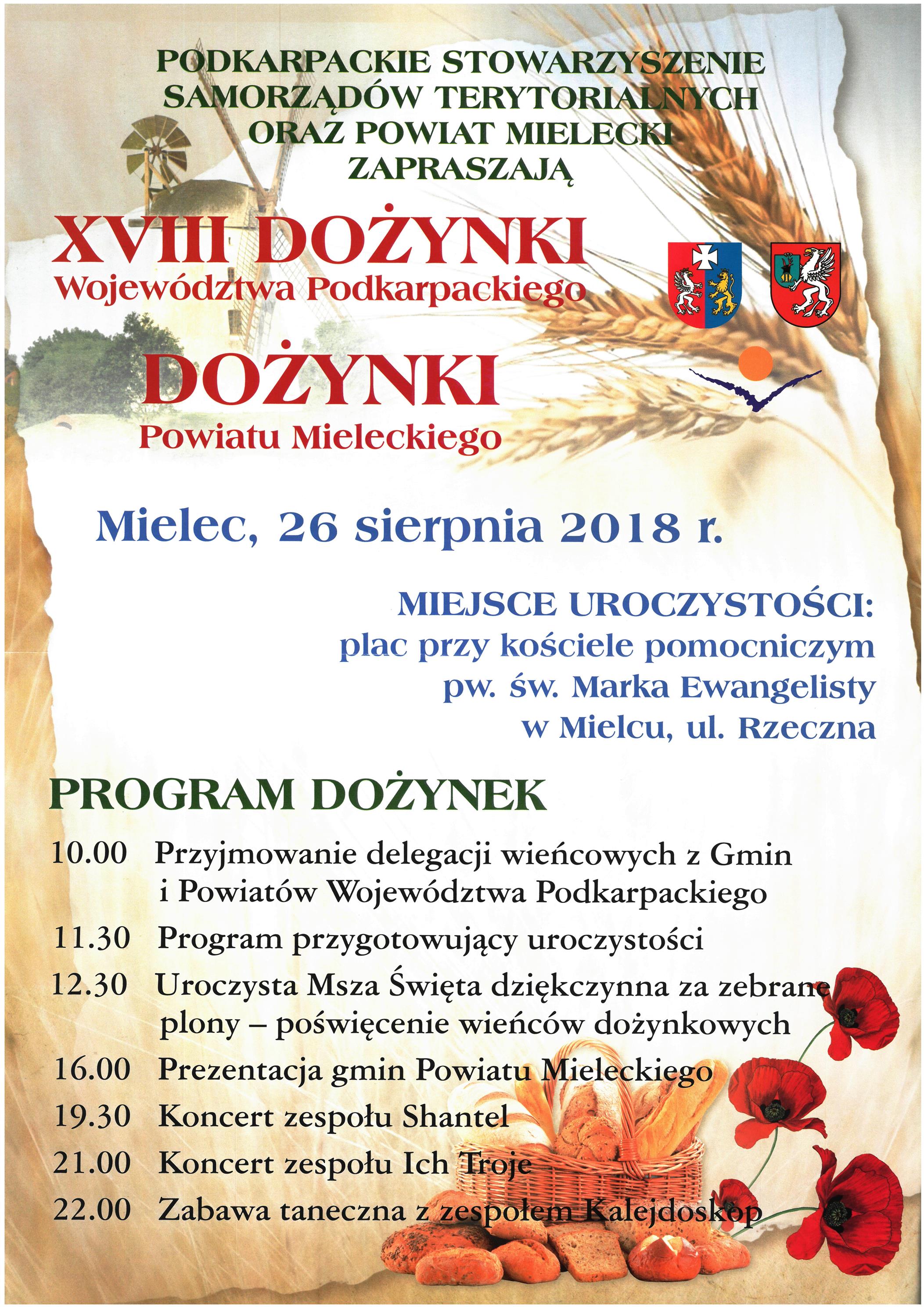 Marszałek Władysław Ortyl - Przewodniczący Zarządu PSST, zaprasza do udziału w XVIII Dożynkach Województwa Podkarpackiego, które odbędą się w Mielcu 26 sierpnia 2018 r.