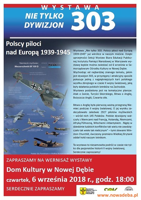 Wystawa „Nie tylko 303. Polscy piloci nad Europą 1939-1945” już wkrótce w naszym mieście. Dzięki uprzejmości Sekcji Wystaw Biura Edukacji Publicznej Instytutu Pamięci Narodowej w Warszawie wystawę będzie można podziwiać od 6 września 2018 r. w Samorządowym Ośrodku Kultury w Nowej Dębie.