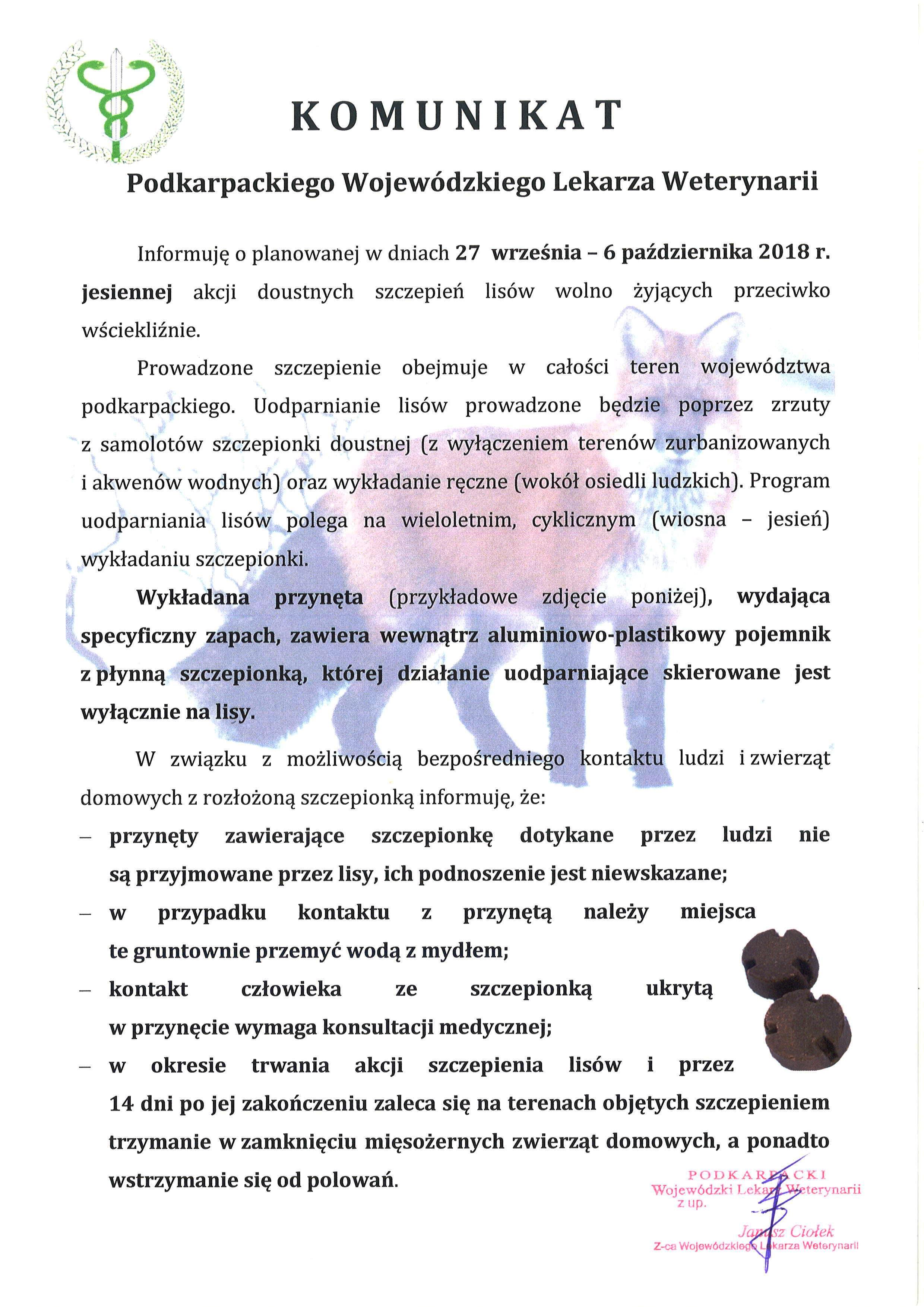 Uwaga - szczepienie lisów wolno żyjących!