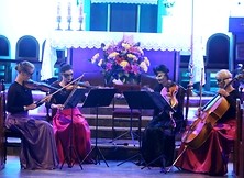 Wykonawcy czyli Kwartet smyczkowy „Con Affetto” w składzie: Angelina Kierońska – I skrzypce, Karolina Bartczyszyn – II skrzypce, Karolina Stasiowska – altówka, Anna Podkościelna-Cyz – wiolonczela oraz towarzyszący im akordeonista Paweł Kusion zostali entuzjastycznie przyjęci przez nowodębskich słuchaczy. To artyści posiadający duże sceniczne doświadczenie. Con Affetto od 2005 roku prowadzi aktywną działalność artystyczną koncertując w wielu ciekawych i prestiżowych miejscach. Kwartet dysponuje szerokim i zróżnicowanym repertuarem, począwszy od kanonów muzyki klasycznej, poprzez ciekawe aranżacje muzyki rozrywkowej, filmowej i musicalowej, aż po oryginalne wykonania muzyki współczesnej. Szczególne miejsce w repertuarze Con Affetto zajmują tanga, wykonywane przez nie z wielką pasją i szczególnym uwielbieniem tego rodzaju ekspresji artystycznej. Członkinie kwartetu nieustannie rozwijają swoje muzyczne zainteresowania systematycznie uczestnicząc w nagraniach płyt, projektach orkiestrowych, teatralnych oraz koncertach zespołów polskiej sceny rozrywkowej (współpracując między innymi z Krzesimirem Dębskim oraz Piotrem Cugowskim). Wysoki poziom i profesjonalizm wykonania poszczególnych utworów sprawił, iż wszyscy zebrani przeżyli chwile zadumy i wzruszeń.