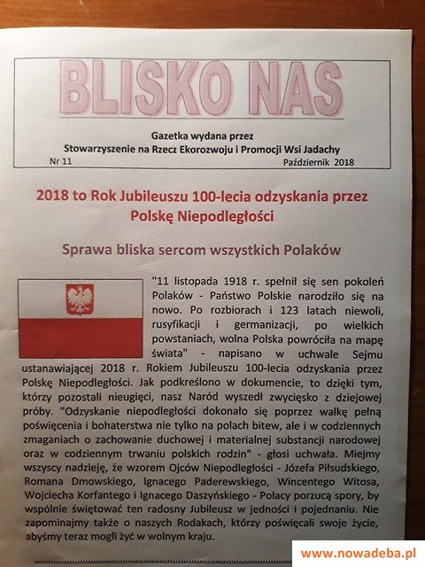 Prelekcja spotkała się z dużym zainteresowaniem szczególnie starszych mieszkańców i młodzieży. Ostatnim etapem projektu będzie zakończenie budowy pomnika i jego uroczyste odsłonięcie w rocznicę odzyskania niepodległości oraz zorganizowanie wspólnie ze Szkołą Podstawową w Jadachach uroczystej wieczornicy dla mieszkańców i gości. Zapraszamy wszystkich zainteresowanych do Jadachów 9 listopada. Szczegóły uroczystości zamieścimy niebawem na okolicznościowych plakatach.