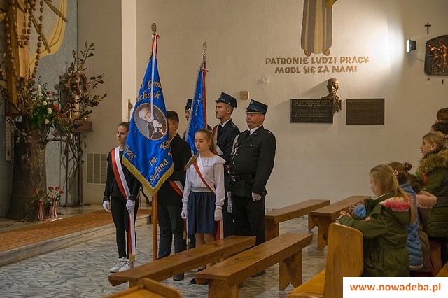 Uroczystości rozpoczęły się uroczystą Mszą Św. w intencji Ojczyzny w parafialnym kościele z udziałem pocztów sztandarowych Szkoły Podstawowej im. Kardynała Stefana Wyszyńskiego w Jadachach i Ochotniczej Straży Pożarnej, społeczności szkolnej, mieszkańców i licznych gości.