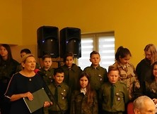 Na dalszą część uroczystości zaproszono zebranych do Domu Ludowego, gdzie program artystyczny opierający się na akcentach patriotycznych, w montażu słowno – muzycznym zaprezentowali uczniowie szkoły, przygotowani pod kierunkiem Anity Kozdęby, Agnieszki Wilk oraz Barbary Boślak.