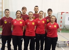 Na zdjęciach badmintoniści Stali Nowa Dęba na badmintonowych kortach w Suwałkach.